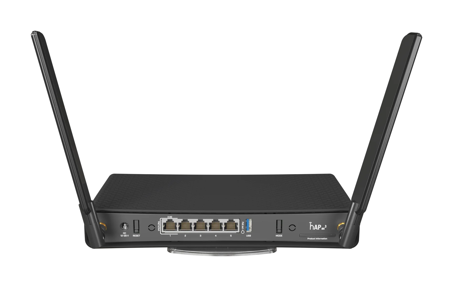 hAP ax³ is our most powerful AX device with the best wireless network coverage so far. It features a modern quad-core ARM CPU running at 1.8 GHz and enough memory (1GB RAM + 128 MB NAND) for most tasks. Complex firewall rules, IPsec hardware encryption, Wireguard, BGP, advanced routing, or multiple remote work VPN tunnels won’t stop your family from comfortable browsing, streaming, gaming, and so on. There’s enough processing power for everyone. And we’ve added a speedy USB 3 port for all your storage purposes or an additional LTE modem.