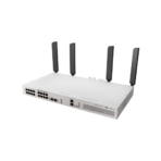 The Wi-Fi version of CRS418… with our strongest 4×4 MIMO Wi-Fi 6! L3 HW offloading, quad-core 2.2 GHz ARM CPU, 16x Gigabit Ethernet ports + a Gigabit management port with a direct CPU line, 2x 10G SFP+ ports, PoE-out.