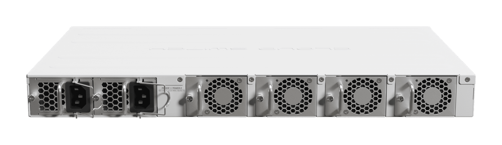 The two hot-swap power supplies support a high input voltage range: 100-240V. The board itself uses up to 45W of power, while the total maximum power consumption goes up to 77W with all the attachments. It can be a bit more power-hungry than the CRS504, but you would be too if you had 16x 25-Gigabit ports, wouldn’t you?