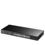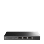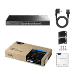 A 19-inch 24-GbE switch with VLAN/Extend functions and a fanless cooling system.