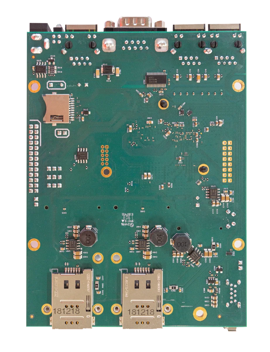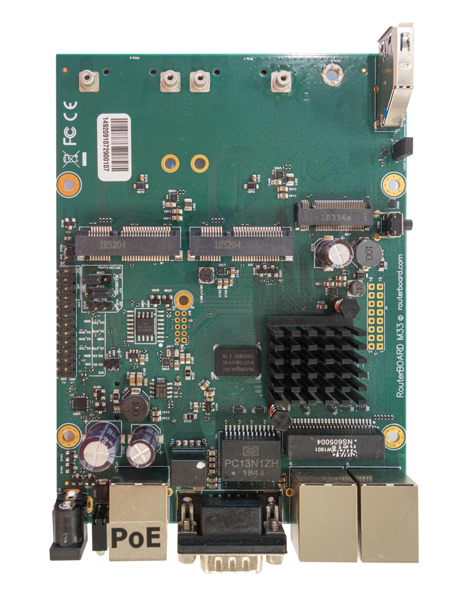 The RBM33G is a fully featured RouterBOARD device perfect for using in your own enclosure or building a custom solution. It uses the same PCB form factor and same mounting holes as it’s predecessors (RB433 and RB953 series).