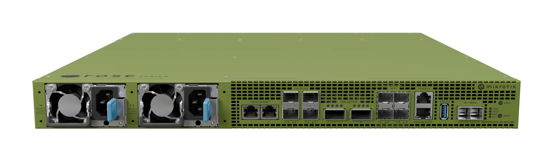 - Runs RouterOS – The most flexible, modular networking OS. Supports advanced storage capabilities, including exporting block devices over NVMe-TCP, encryption layers, and modular storage configurations for scalable infrastructure. No subscriptions. No paywalls.